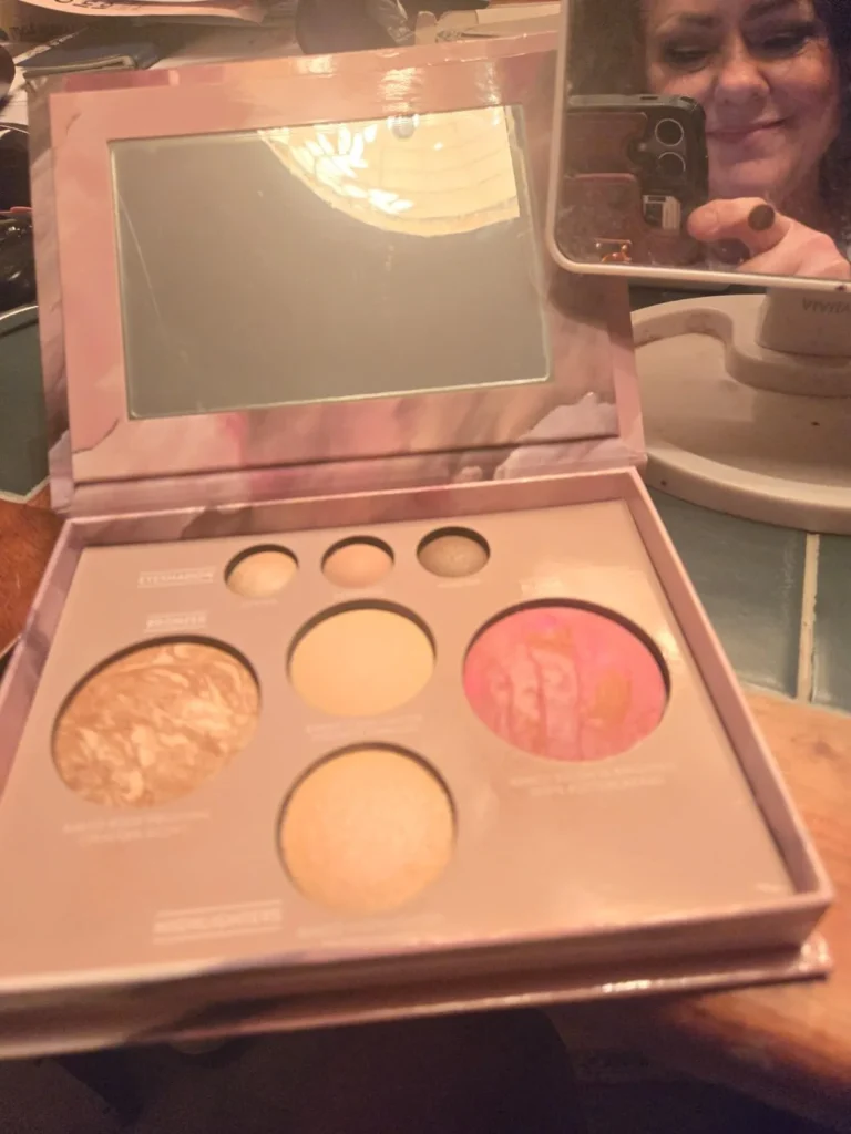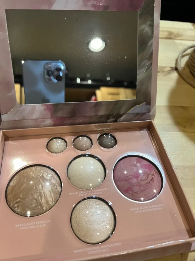 • All-in-One Beauty – Compact includes three neutral baked eyeshadows, bronzer (Tahitian Glow), blush (Pink Buttercream), and two highlighters (French Vanilla & Portofino).